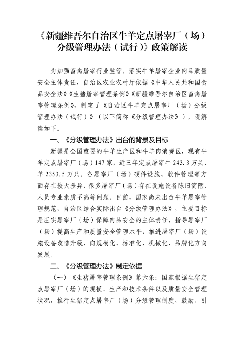 《新疆维吾尔自治区牛羊定点屠宰厂(场)分级管理办法(试行)》政策解读